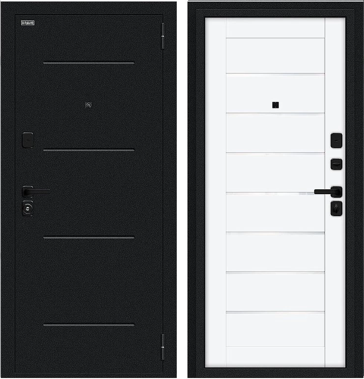 Надежная входная Дверь Браво Техно/SBlack Букле черное/White Silk премиум класса по цене 35 163 руб. Большая толщина стали защитит от проникновения в ваш дом, квартиру или коттедж. Используется очень качественная фурнитура: замки, цилиндры, ручки, защелки. Покрытие и отделка двери изготовлено под внимательным контролем производителя. Дверь имеет долгий срок службы и гарантию.